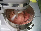豚のひき肉に塩・香辛料・ハーブなどをいれしっかり混ぜ合わせ、